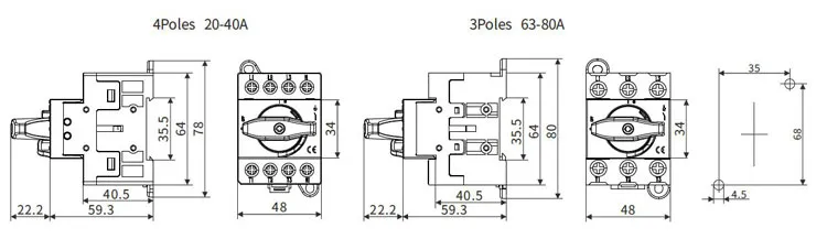 Isolationsschalter AC 4P In:80A Schwarzer Griff mit Schloss |