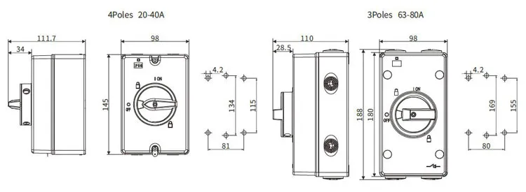 AC-Isolationsschalter mit Box IP65 4P In:80A Roter Griff |