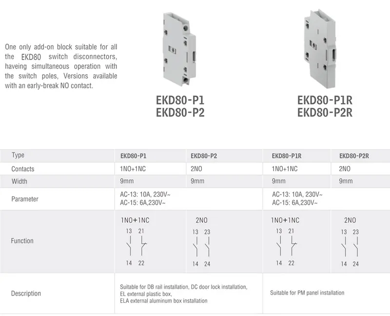 Der Trennschalter übernimmt die gleiche Hilfsfunktion Der Trennschalter kann mit bis zu | Die Klemmenabdeckung des Trennschalters verfügt über eine einfache | Simultan- oder Frühkontaktbetrieb | |||