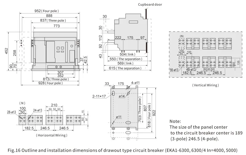 Ausziehbarer Typ ACB 4P 6300A Icu:120KA Ics:100KA |