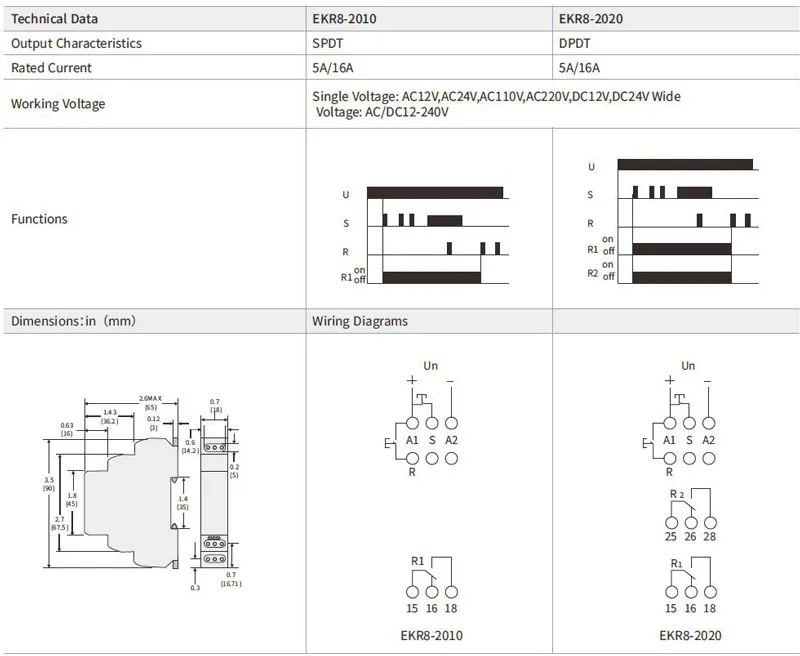 Anruf-/Reset-Relais SPDT 12-240 VAC/DC 16A |