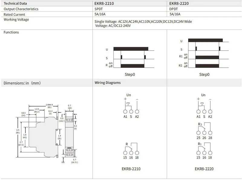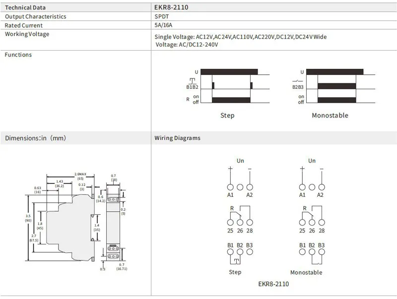 Schritt-/Monostabiles Relais SPDT 12-240VAC/DC 5A |