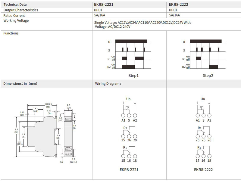 Schrittrelais DPDT Schritt 2 12-240 VAC/DC 5A |