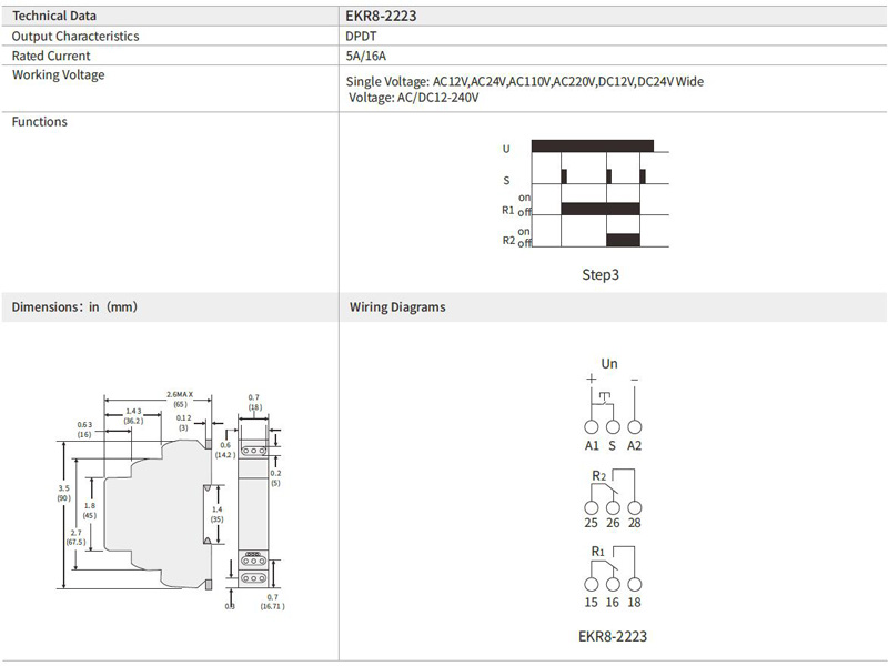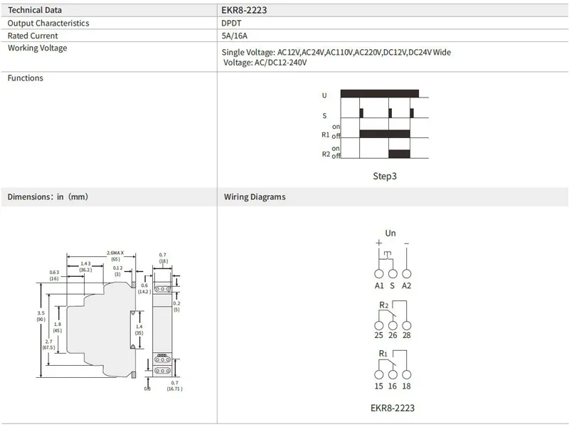 Stufenrelais DPDT Stufe 2 12-240VAC/DC 16A |