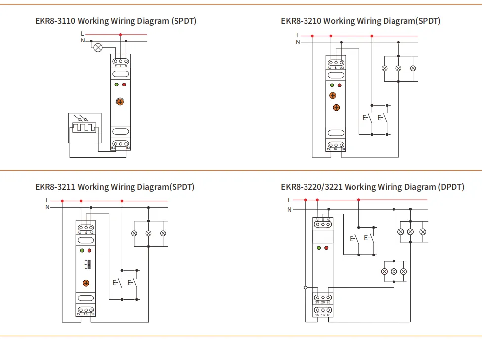 EKR8-3 enthält zwei Produkttypen: Lichtaktivierter Schalter und Treppenlicht-Zeitschalter.