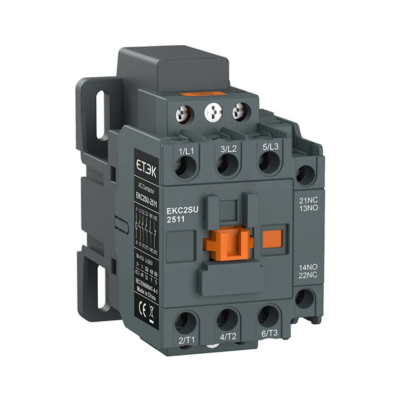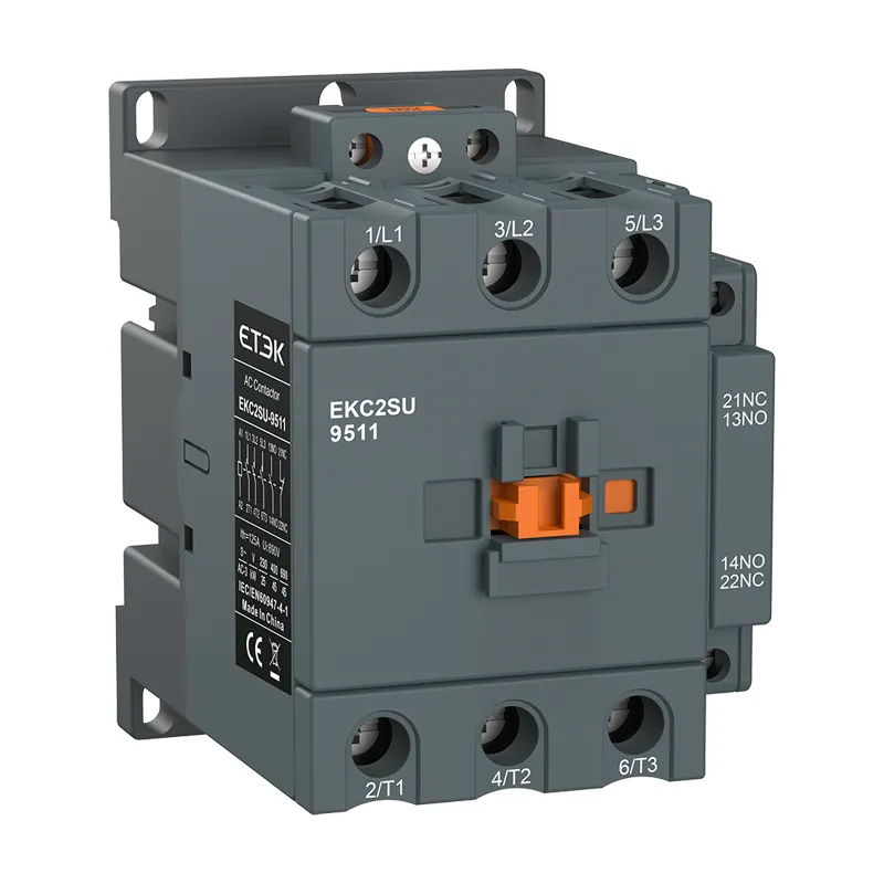 Wechselstromschütze der Serie EKC2SU werden zur Steuerung dreiphasiger Motorstromkreise bis zu 690 V Wechselstrom verwendet. Diese Schütze sind Blockschütze mit 3 Hauptpolen. Eingebauter Hilfskontakt 1NO+1NC und Überspannungsschutz, was zu Zeit- und Kosteneinsparungen bei der Installation führt.