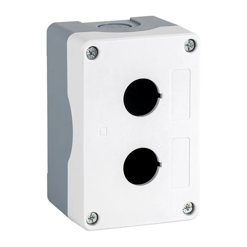 | 2 Löcher | Weiß | EKCB-A2W | IP65-Druckknopfgehäuse, 2 Löcher, Kunststoff, weiß, 22 mm Ausschnitt, Höhe 60 mm |