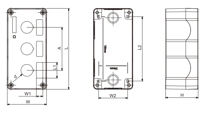 | 3 Loch | Weiß | EKCB-A3W | IP65-Druckknopfgehäuse, 3 Löcher, Kunststoff, weiß, 22 mm Ausschnitt, Höhe 60 mm |