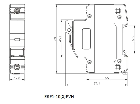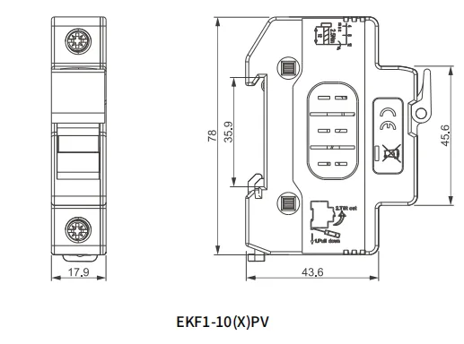 EKF1-10PV ist ein DC-Sicherungshalter zum Schutz von Photovoltaik-Strängen vor Kurzschlüssen und Überlastungen. Er hat eine Nennbetriebsspannung von DC1000V und einen maximalen Betriebsstrom von 32A. Er wird sicher mit einer Standard-DIN-Schiene 35 mm installiert, um optimale Kompatibilität und Stabilität zu gewährleisten.