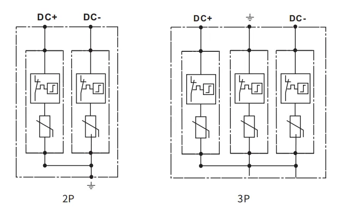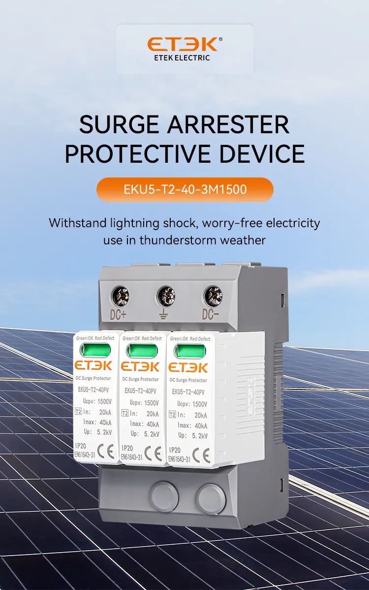 EKU5-T2-40 PV SPD ist ein DC-Überspannungsschutz, der speziell für Photovoltaik-Stromversorgungssysteme entwickelt wurde. Die maximale Dauerbetriebsspannung erreicht DC1500V. Diese Einheiten müssen parallel in den zu schützenden DC-Netzwerken installiert werden und bieten Schutz für gemeinsame und unterschiedliche Modi. Die Installation wird an beiden Enden der DC-Stromversorgungsleitung (Solarpanelseite und Wechselrichter-/Konverterseite) empfohlen, insbesondere wenn die Leitung extern und lang ist.