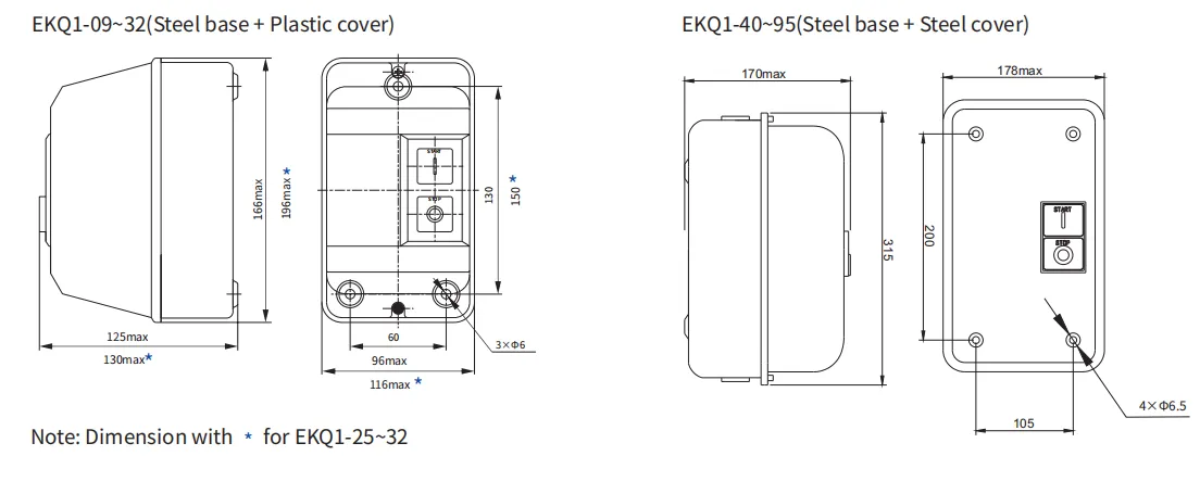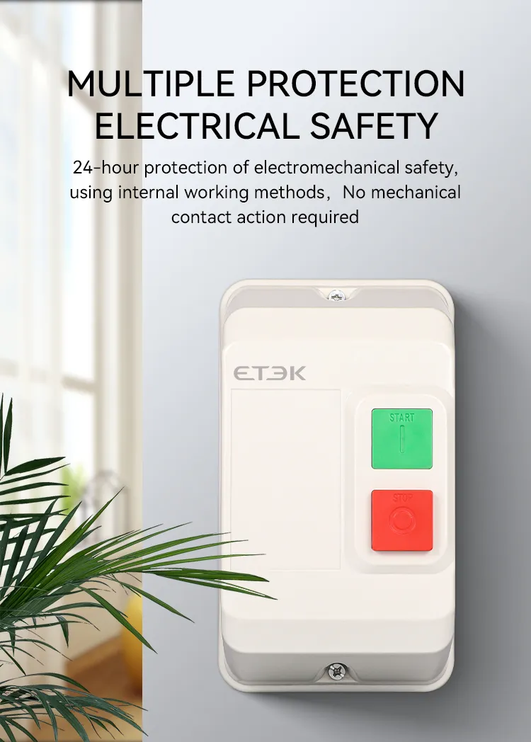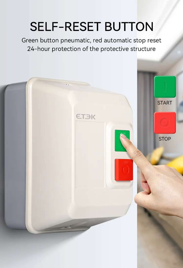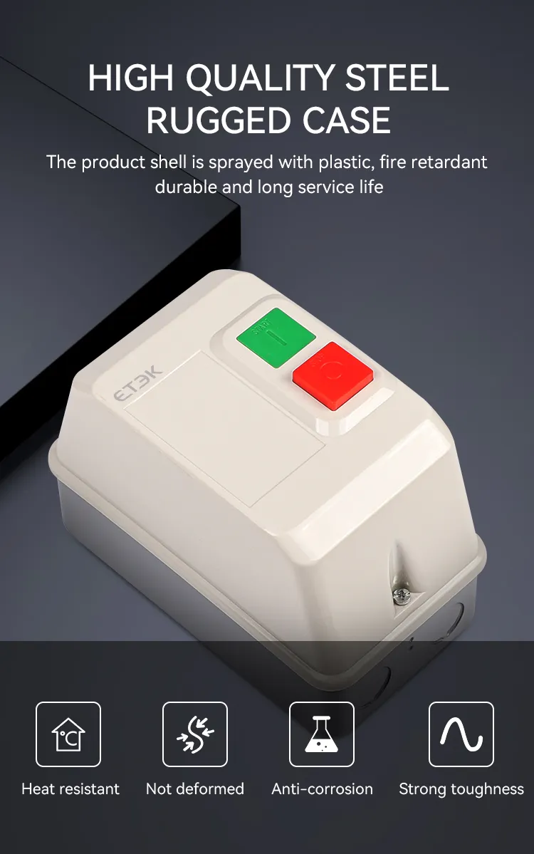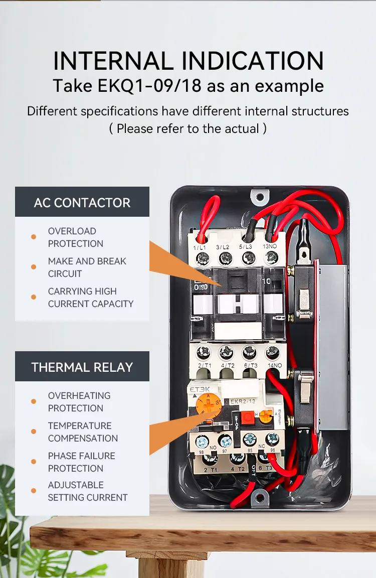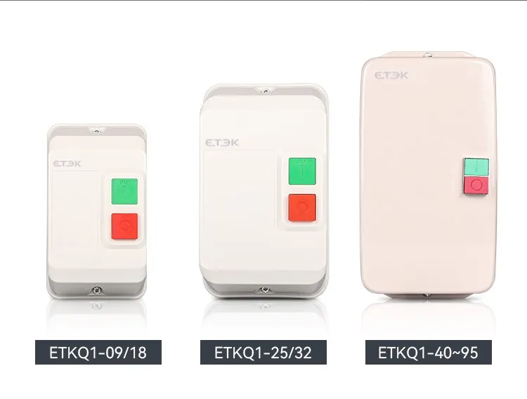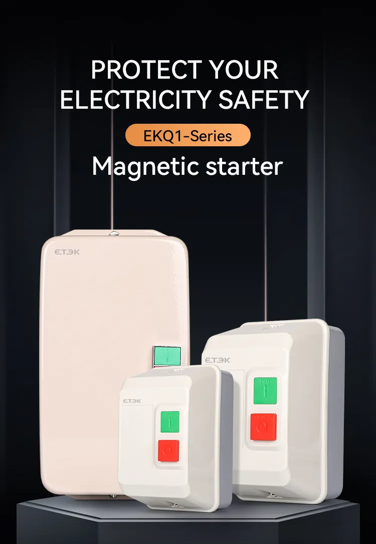 Der elektromagnetische Starter der Serie EKQ1 (im Folgenden kurz „Starter“) wird zum Steuern des Schließens oder Öffnens eines Schützes durch eine Kombination aus externem Signal und Thermorelais verwendet und im selben Metallgehäuse installiert. Die externen Schaltersignale dienen zur Steuerung entsprechend dem angeschlossenen Kontaktgerät und den Unterbrechungspunkten. Er wird hauptsächlich für Stromkreise mit Wechselstrom von 50 Hz (oder 60 Hz), Nennbetriebsspannung von 660 V und Nennleistung von bis zu 45 kW (Strom von bis zu 95 A) verwendet, um den direkten Start und Stopp des Elektromotors zu steuern und den Motor vor Überlastung und Phasenausfall zu schützen.