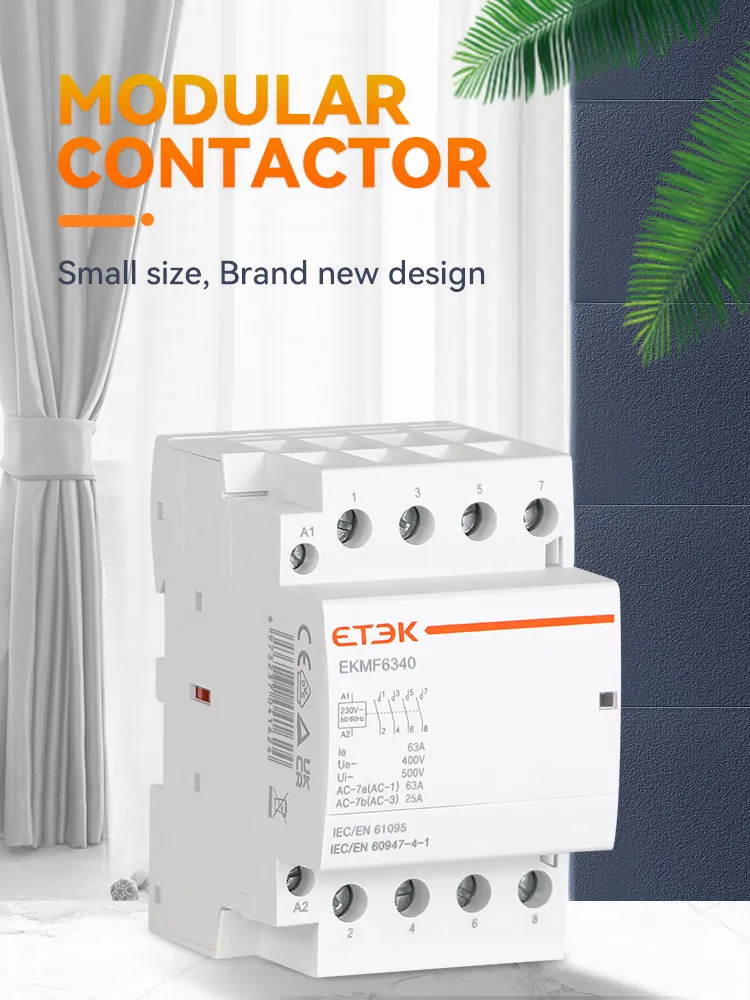 Der modulare Schütz ist eine Art Schaltgerät, das zur Steuerung kleiner Lasten verwendet wird, ohne dass während des Betriebs ein Brummen auftritt. Er kann auf einer DIN-Schiene montiert werden. Er ist kompakt und kann in kleinen elektrischen Gehäusen und Schränken verwendet werden.