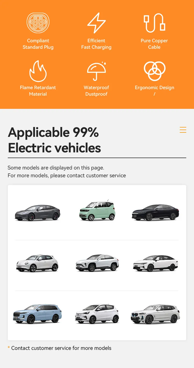 Einzelstecker-Ladekabel für Elektrofahrzeuge | |