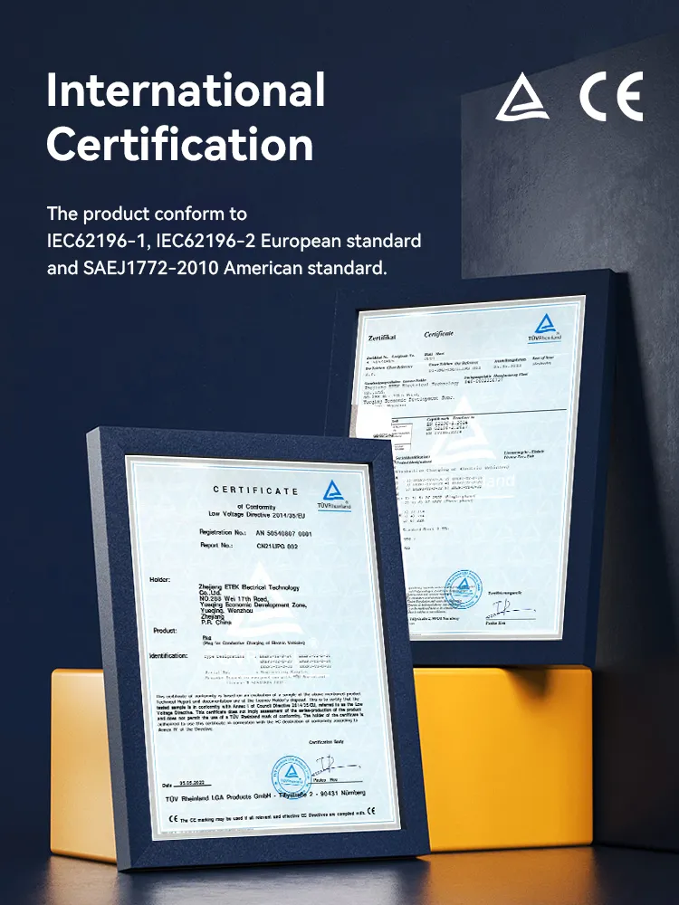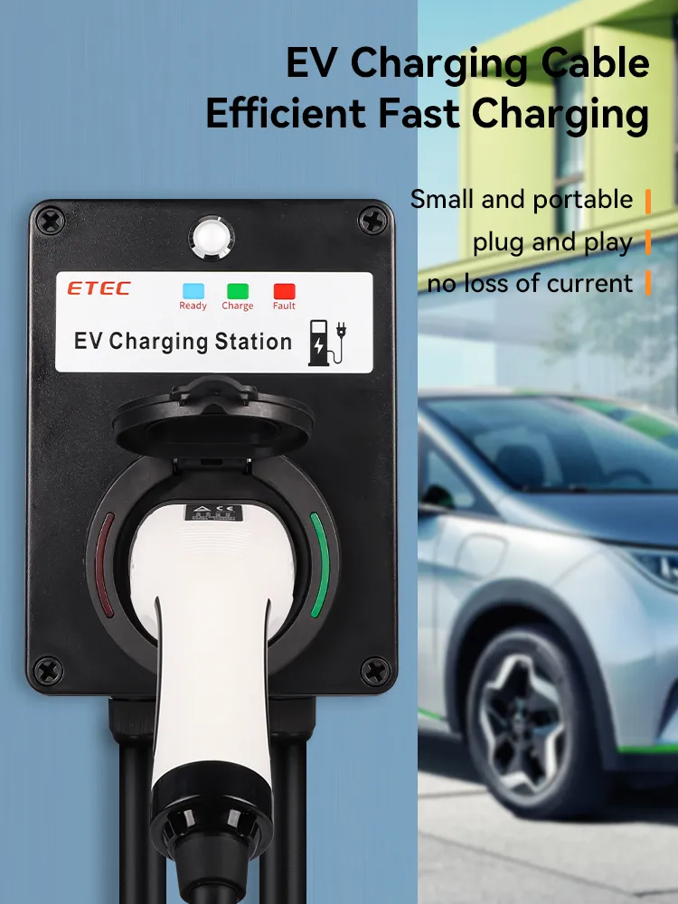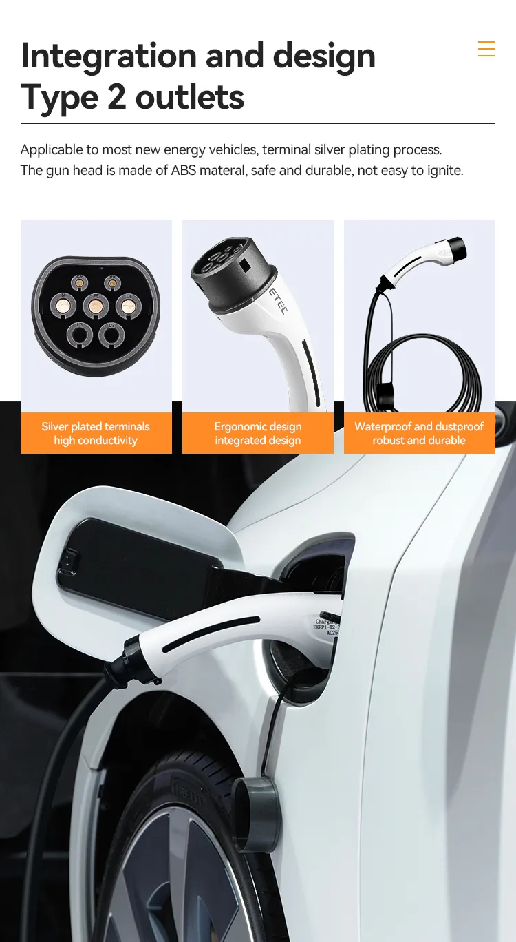 Europäischer Stecker Typ 2 mit Ladekabel, es handelt sich um einen weiblichen Endstecker Typ 2 zum direkten Anschluss an das Ladefahrzeug, geeignet für Benutzer, die ihre eigenen Ladesäulen selbst bauen oder Ladesäulen herstellen möchten. Die Produkte erfüllen die Ladeanschlussnormen IEC 62196-2. Es gibt hauptsächlich zwei Stromoptionen von 16 A und 32 A, die in einphasige und dreiphasige Versionen unterteilt sind und standardmäßig ein 5 m langes schwarzes gerades Kabel haben.