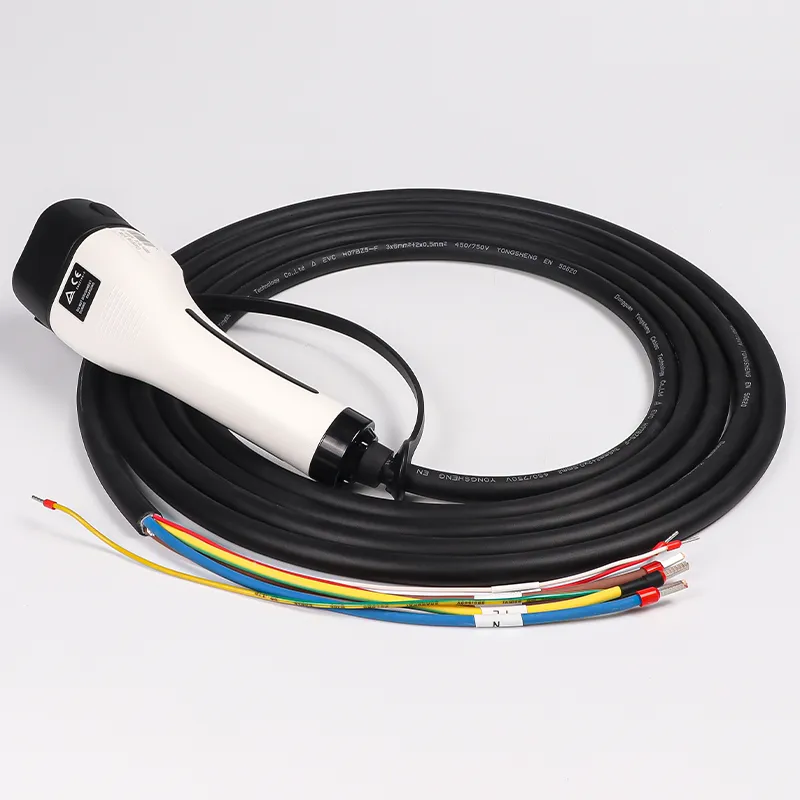 Typ-2-Buchsenstecker mit Ladekabel, es handelt sich um einen Typ-2-Buchsenstecker zum direkten Anschluss an das Ladefahrzeug, geeignet für Benutzer, die ihre eigenen Ladesäulen selbst bauen oder Ladesäulen herstellen möchten. Die Produkte erfüllen die Ladeanschlussnormen IEC 62196-2. Es gibt hauptsächlich zwei Stromoptionen von 16 A und 32 A, die in einphasige und dreiphasige Versionen unterteilt sind und standardmäßig ein 5 m langes schwarzes gerades Kabel haben.