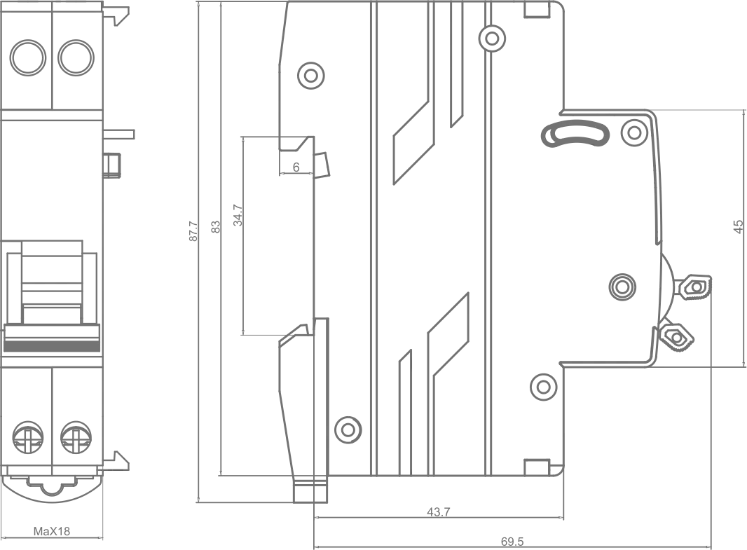 3. Dank des speziellen Stifts auf der linken Seite der MCBs/RCBOs zu montieren.