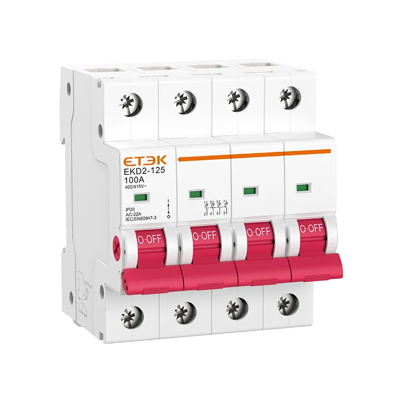 Der Trennschalter EKD2-125 ist für Wechselstrom mit 50 Hz oder 60 Hz, Nennstrom 125 A, Nennbetriebsspannung 230 V und 400 V oder weniger in der Stromverteilung geeignet. Er wird hauptsächlich als Hauptschalter für elektrische Endgeräte verwendet und steuert auch verschiedene Arten von Elektromotoren, kleinen Elektrogeräten und Beleuchtungsanlagen. Seine mechanische Lebensdauer beträgt 10.000 Mal, die elektrische Lebensdauer davon 4.000 Mal.
