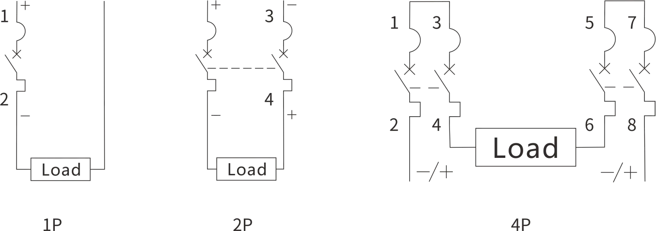 ● Nennspannung: 1P (250 VDC), 2P (500 VDC), 4P (1000 VDC)