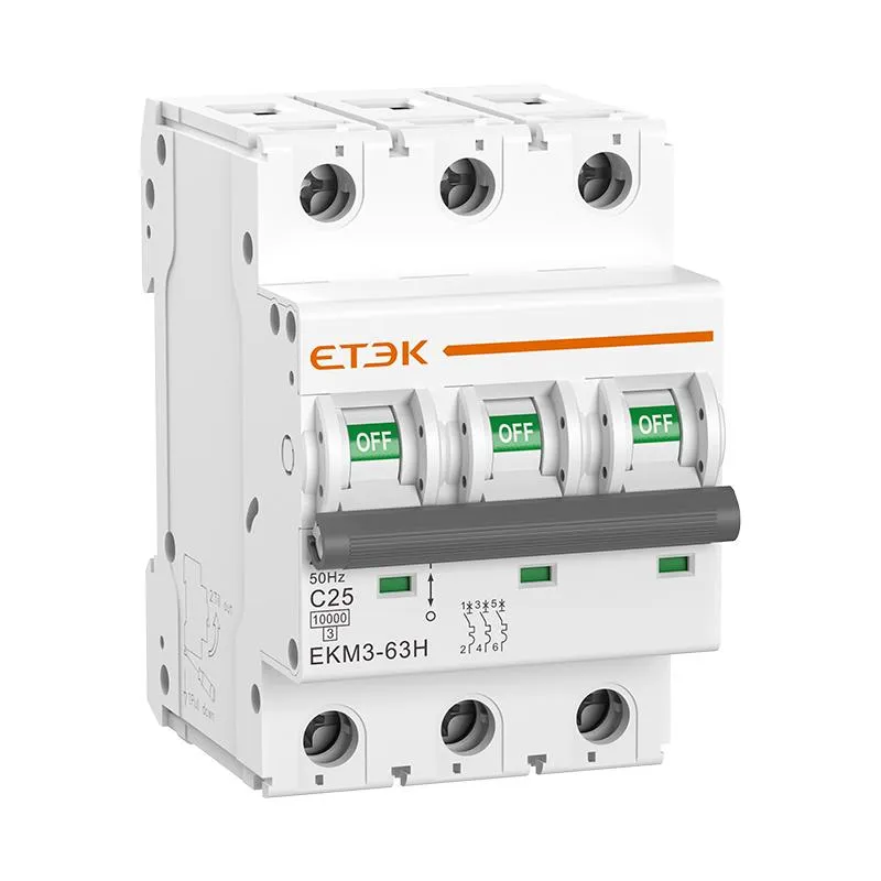 EKM3-63H ist unser neuestes 10-kA-Miniatur-Leistungsschalterprodukt der S3-Serie. Es wird hauptsächlich für Wechselstrom 50 Hz oder 60 Hz, Nennspannung 400 V oder weniger und Nennbetriebsstrom 63 A oder weniger verwendet. Es wird zum Überlast- und Kurzschlussschutz von Beleuchtung, Verteilungsleitungen, Geräten in Bürogebäuden, Wohngebäuden usw. verwendet.