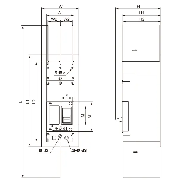 | Modell | W | W1 | W2 | L | L1 | L2 | M | M1 | F | H | H1 | H2 | d1 | d2 | d3 |
