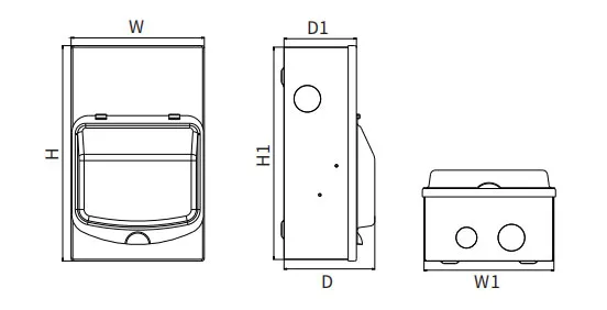 | Modell | Code | H | B | D | T1 (T1) | W1 | H1 | |