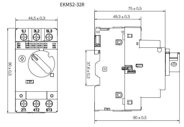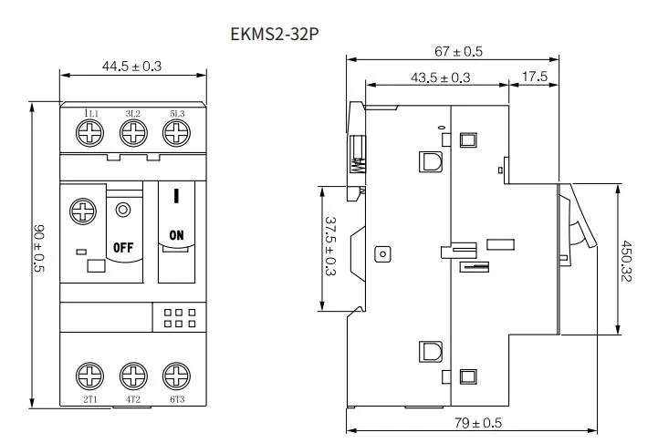 Der Motorschutzschalter (MPCB) der EKMS2-Serie ist für Stromkreise mit Wechselspannung bis zu 690 V und Stromstärke bis zu 80 A ausgelegt. Es handelt sich um ein umfassendes Schutzgerät, das die Funktionen eines Trennschalters, Leistungsschalters und thermischen Überlastrelais integriert. Sein Hauptzweck besteht darin, verschiedene einphasige und dreiphasige Wechselstrommotoren vor möglichen Schäden wie Überlastung und Kurzschluss zu schützen.