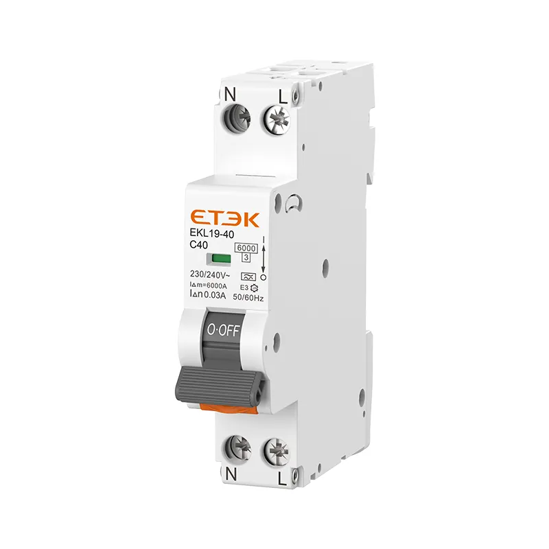 EKL19-40-Produkte bieten Schutz gegen Erdschlüsse, Überlastungen, Kurzschlüsse und Überspannungen in gewerblichen und privaten Installationen. Der RCBO mit sowohl getrenntem Neutralleiter als auch Phase garantiert seine ordnungsgemäße Betätigung gegen Erdschlussfehler, selbst wenn Neutralleiter und Phase falsch angeschlossen sind. Der elektronische RCBO verfügt über ein Filtergerät, das die Risiken unerwünschter Spannungs- und Stromstöße verhindert.