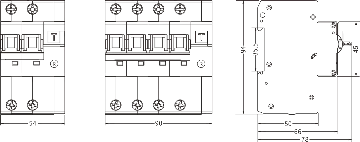 Der RCBO befindet sich in drei oder fünf DIN-Modulen und ist daher einfacher zu installieren als die herkömmliche Lösung MCB + Zusatzblöcke.