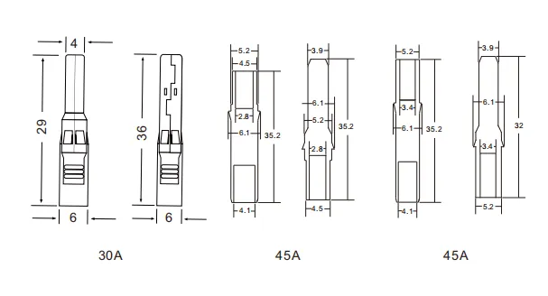 | 45 A ( 4 mm2, 6 mm2; 12 AWG, 10 AWG) | |