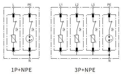 Das N-PE-Modul und das LN-Modul sind mechanisch voneinander getrennt, um falsche Kombinationen von steckbaren SPD-Modulen und -Buchsen zu verhindern und entsprechen den entsprechenden Bestimmungen von 7.3.1 der Norm IEC61643-11. Beispielsweise kann die Patrone des N-PE-Modus (besteht aus einer Gasentladungsröhre) in den LN-Modus (besteht aus einem Varistor) gesteckt werden, was zu gefährlichen Situationen wie einem Brandausbruch führen kann.
