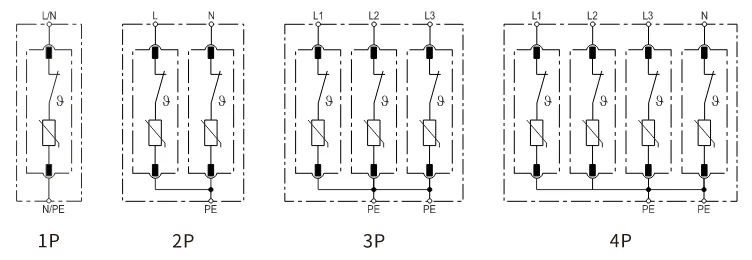 | Anzahl der Pole | 1P | 2P | 3 Punkte | 4P | 1P+NPE | 3P+NPE |