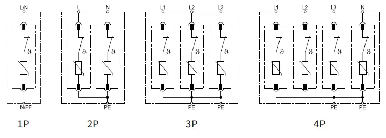 | Anzahl der Pole | 1P | 2P | 3 Punkte | 4P | 1P+NPE | 3P+NPE |